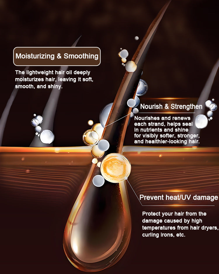 This nourishing treatment penetrates the hair shaft to help renew, soften, and strengthen all hair types and textures, including color-treated, curly, and damaged hair, while sealing in nutrients and shine for visibly silky, touchable tresses. The lightweight, non-greasy oil helps reduce frizz, restore shine, and improve hair strength and elasticity, making it ideal for daily use after showering, before styling, or applied to ends and full length.